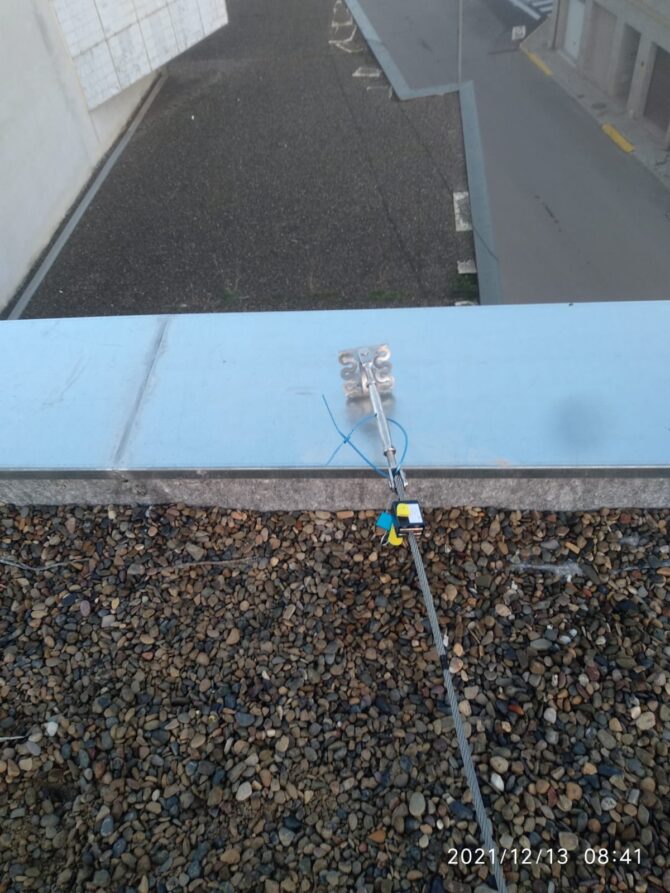 - Instalación de línea de vida fijada en peto perimetral y losa de hormigón, según normativas vigentes. Certificada y homologada UNE 795 clase C